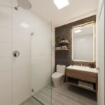 Diseño arquitectónico moderno incluida la fachada. Instalaciones sostenibles y eficientes con ahorro de energía (iluminación led) y de agua (grifería y sanitarios de bajo consumo).
