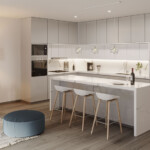 - Cocina equipada, muebles con acabado en poliuretano. Mesada y la isla de piedra sinterizada de GRAMAR.