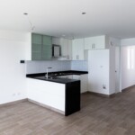 Primera Planta del 503: Tiene un área techada de 49.39 M2, su distribución consta de un balcón con vista lateral al mar, sala – comedor, baño de visita, kitchenette con muebles altos y bajos, escalera de acceso a la segunda planta, dormitorio con baño incorporado.
